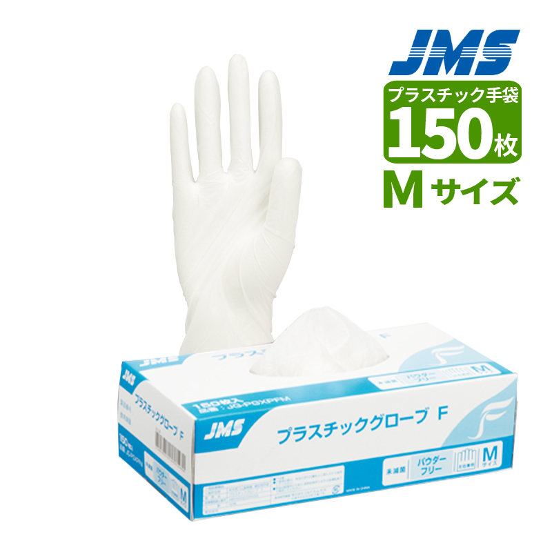 JMS ジェイフィード 手袋 プラスチックグローブ Fパウダーフリ 検診用手袋 Mサイズ 150枚 医療機器認証番号:34B1X00001000094