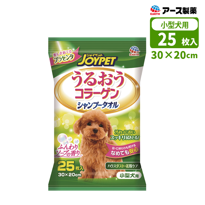 ペット用 JOYPET うるおうコラーゲン シャンプータオル 小型犬用 25枚入 厚手 やわらかメッシュ 花粉ケア 保湿効果 なめても安心 アース・ペット