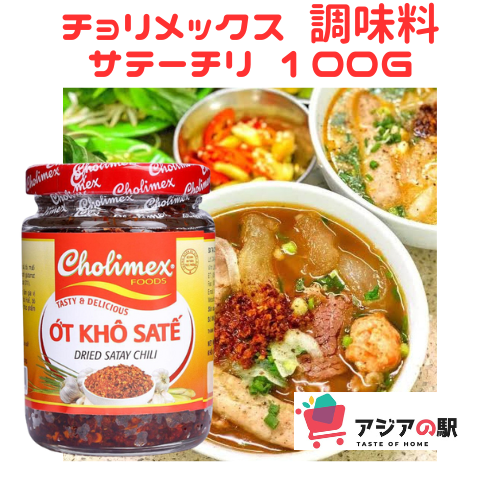 調味料 サテーチリ 100g / OT KHO SA TE CHOLIMEX 100gベトナムのCholimexブランドのドライサテチリ。名称:辛味調味料(サテーチリ)原材料:大豆油、乾燥唐辛子、にんにく、レモングラス、砂糖、食塩、粉末醸造酢内容量:100g賞味期限:巻きシールに記載保存方法:高温多湿を避け常温で保存原産国:ベトナム備考:商品のデザインは予告なく変更される可能性があります。ご了承下さい。餃子や春巻き等の具材に入れても美味しいですよ♪