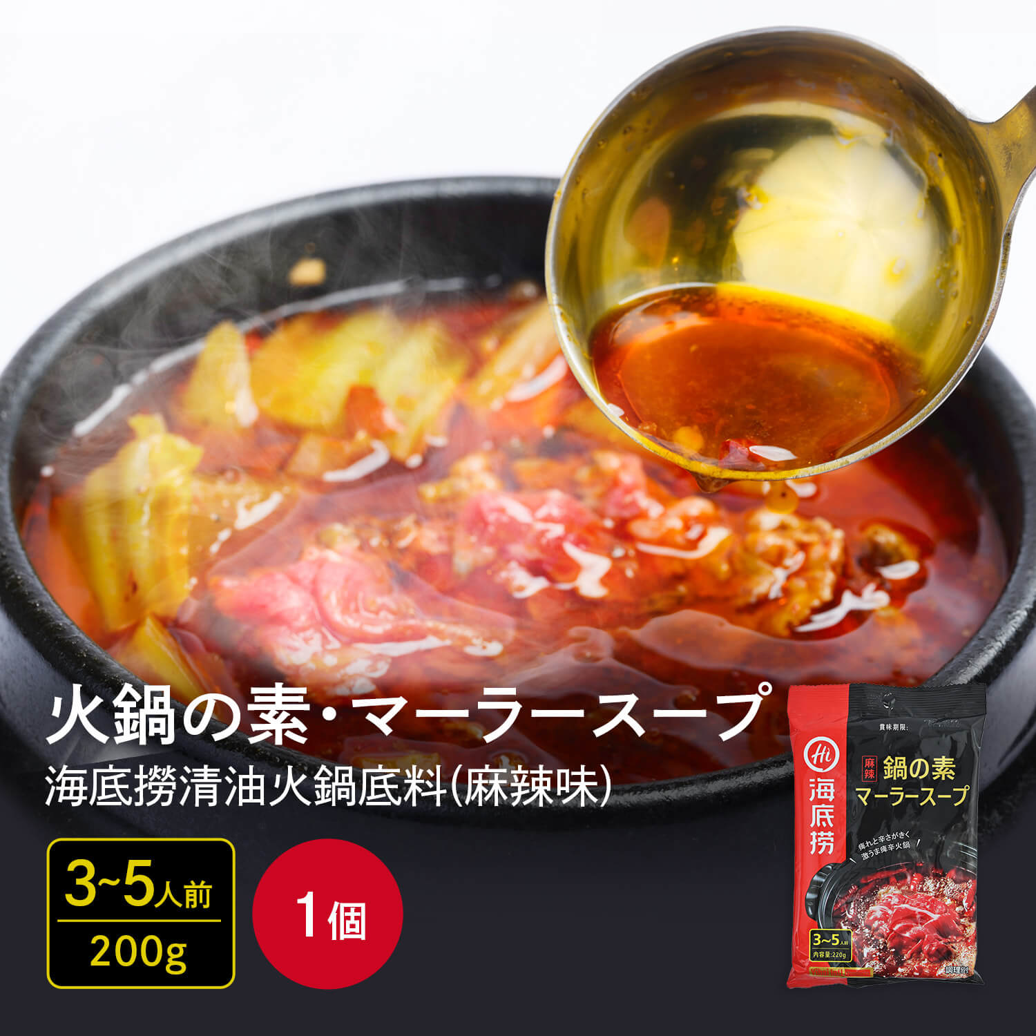 火鍋の素・マーラースープ(3~5人前) 海底撈清油火鍋底料(麻辣味)220g 1個