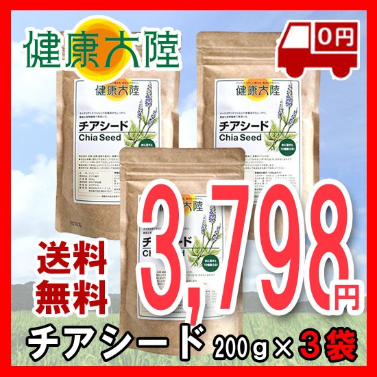 チアシード(健康大陸ラティーナ)200g (3袋セット) 送料無料