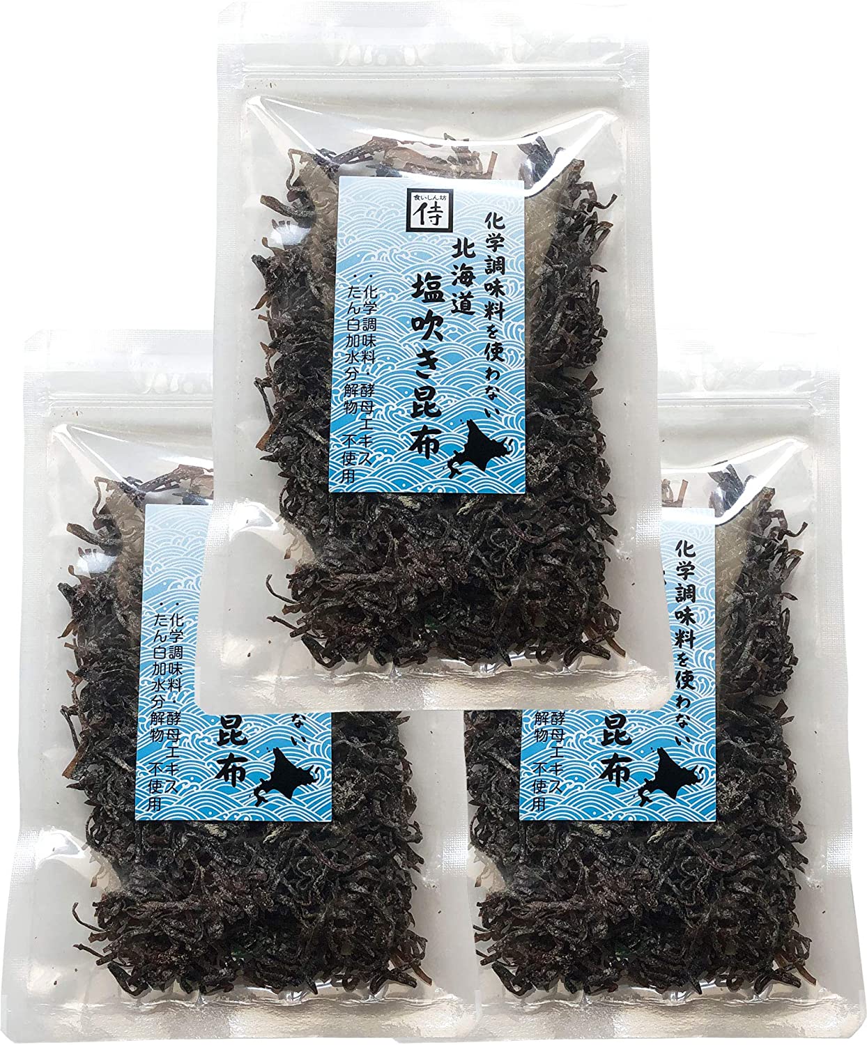食いしん坊侍 化学調味料を使わない北海道塩吹き昆布 ×3袋【化学調味料・酵母エキス・たんぱく加水分解物不使用】