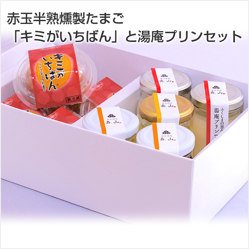 赤玉半熟燻製たまご「キミがいちばん」と湯庵プリンセット