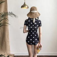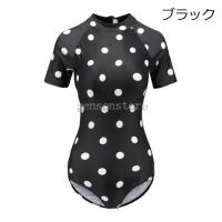 水着 レディース オールインワン 半袖 モノキニ パット付き 水玉柄 体型カバー おしゃれ 温泉 ビーチ プール フィットネス 水着 スイムウェア2色