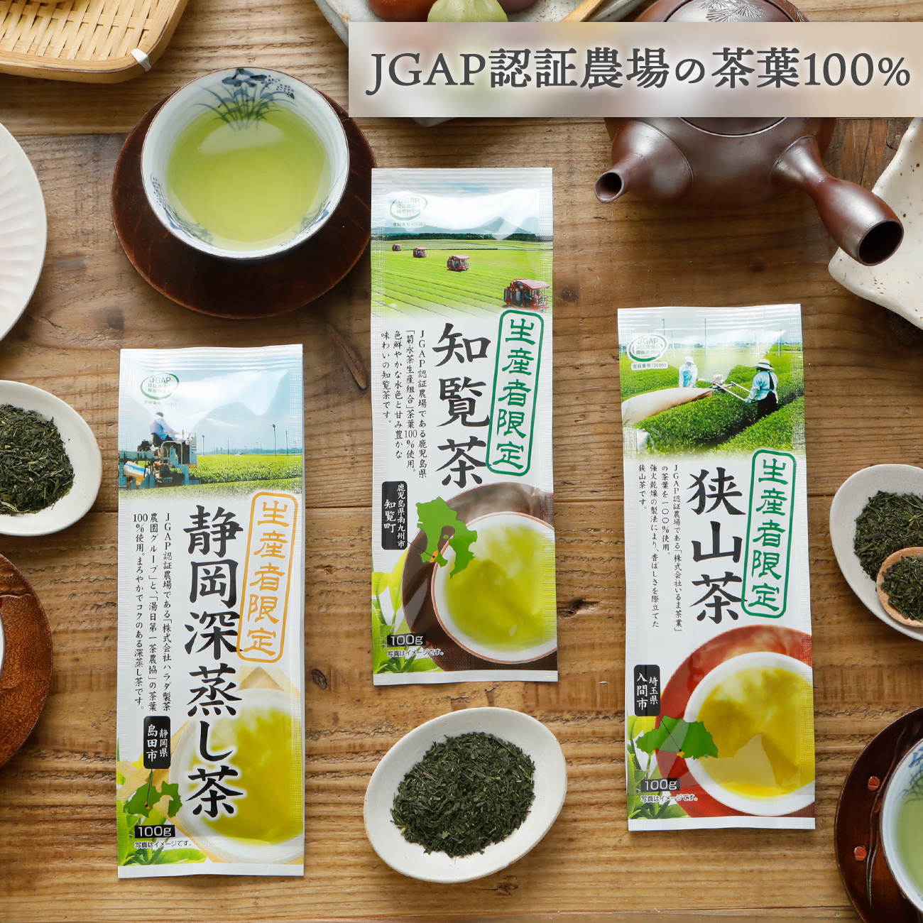 産地:狭山茶・埼玉 知覧茶:鹿児島県産 静岡深蒸し茶:静岡県産