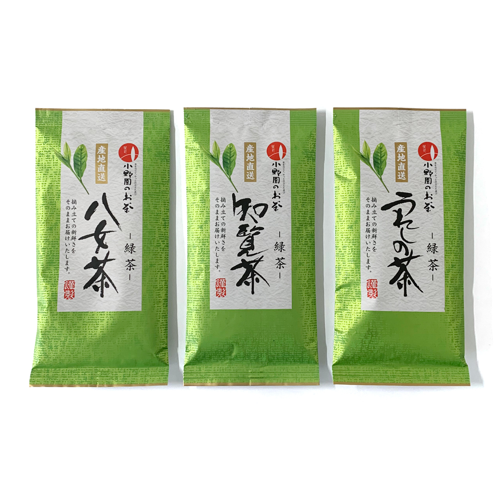 八女茶 知覧茶 嬉野茶(うれしの茶) お茶 緑茶 茶葉 小野園のお茶 飲み比べ3袋セット 各90g【同梱不可商品】【メール便送料無料】[M便 1/1]