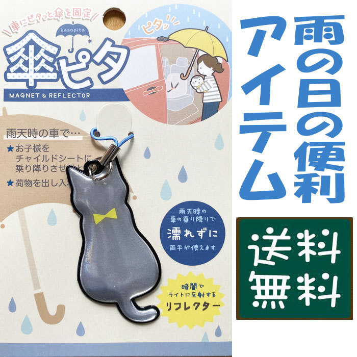 傘ピタ 猫 ネコ ねこ 雨の日 アイテム 傘を固定 便利 マグネット リフレクター 猫