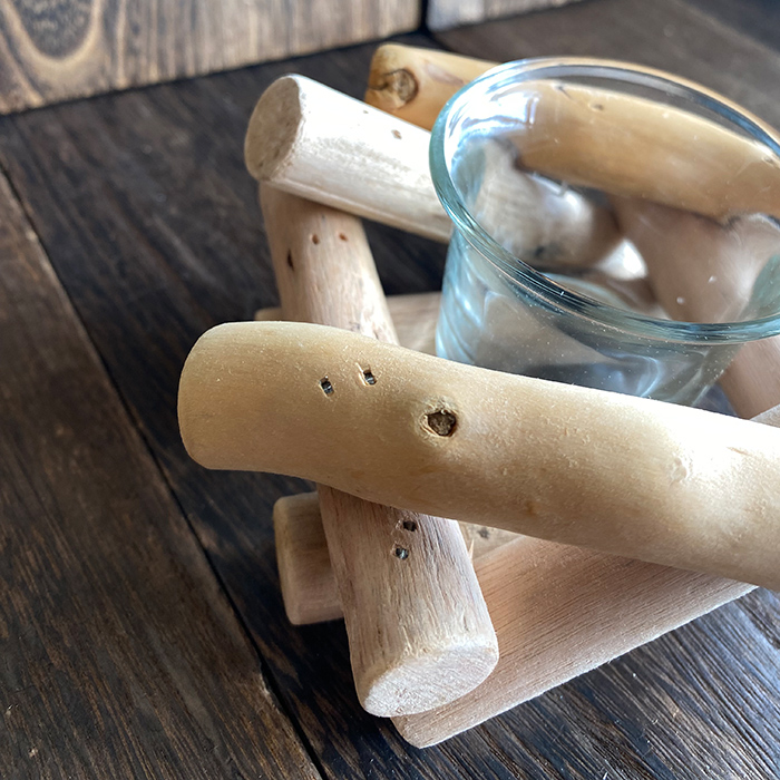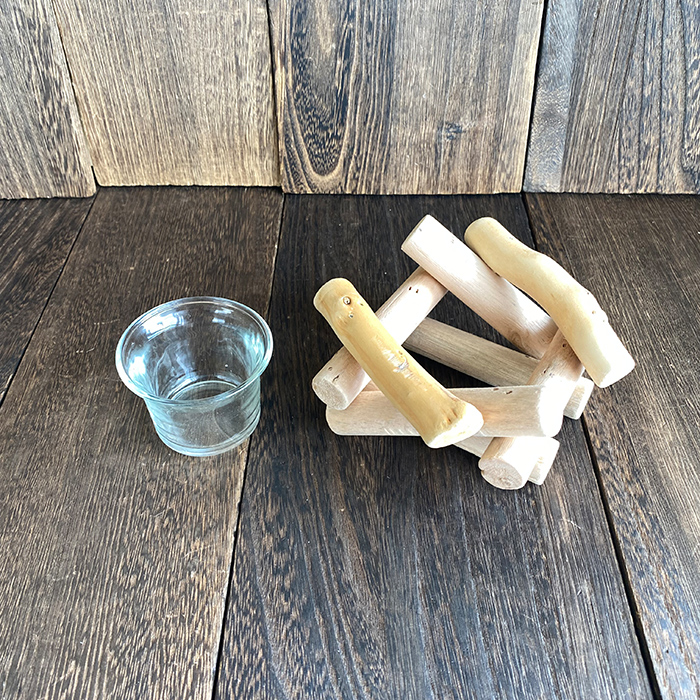 天然木をランダムに重ねたキャンドルホルダー
