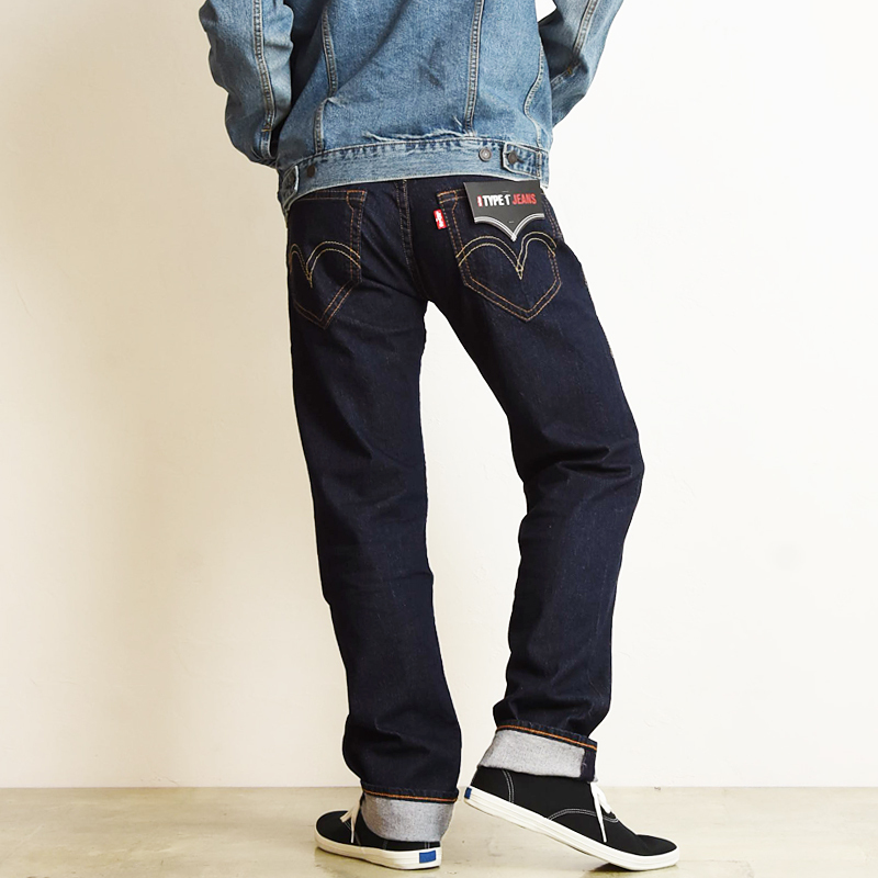 18年ぶりにモダンに生まれ変わったLevisのTYPE1。今回のTYPE1は、オリジナルのTYPE1の本質を受け継ぎながら、生地とフィットを大きくアップデートし、デニムが本来もつ機能性や耐久性はそのままによりサステイナブルな素材を使用し生まれ変わりました。フィットは、当時のロックテイストに代わりストリートファッションへシフト。太すぎず、細すぎない、ちょうどいいシルエットでコーディネートを選ばず、幅広い年代の方におススメできるジーンズです。このクラシックなストレートフィットに、Type1のコンセプト「BOLD(大胆さ)」を融合させ、バックポケットのアーキュエット・ステッチやリベット、ベルトループなどをあえて目立たせるデザインに落とし込みました。