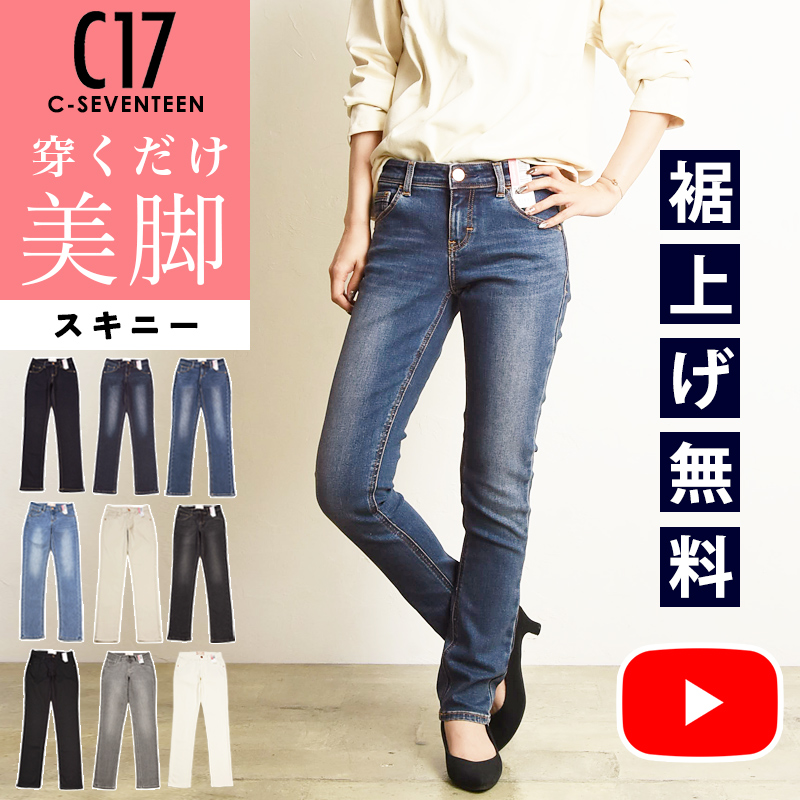 「C17(シーセブンティーン)」から、季節を問わずデイリーに使えるベーシックなストレッチデニムがシリーズで登場。こちらは穿くだけ美脚を実現してくれるスキニーパンツです。