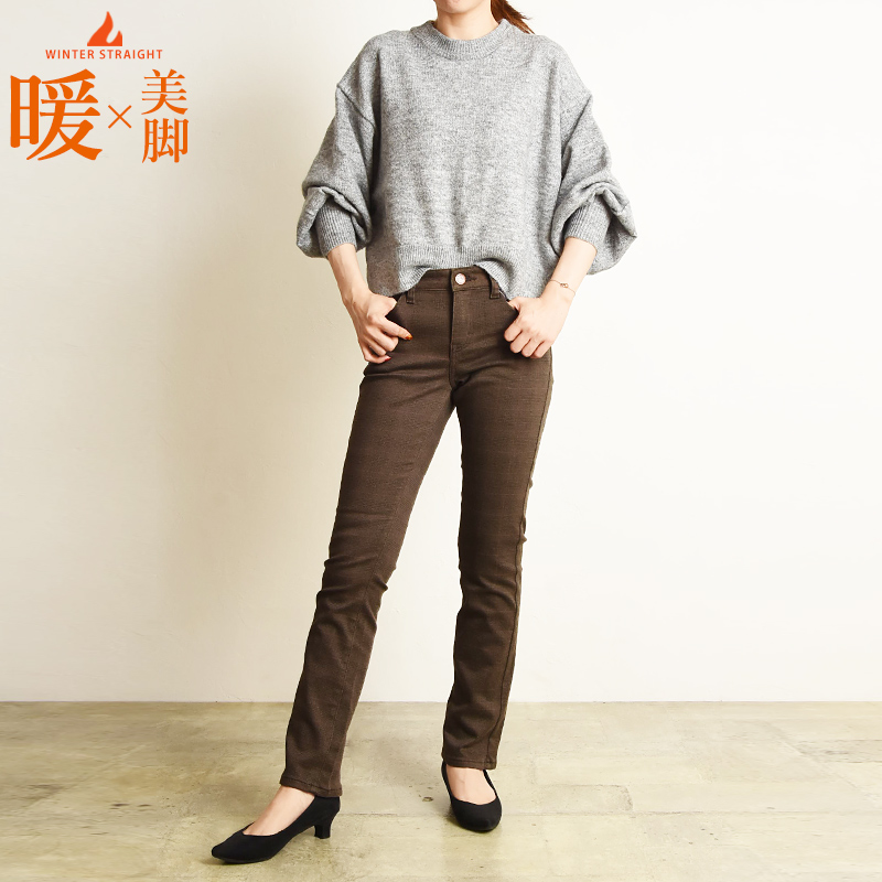 穿いた瞬間からやさしく暖かく感じ、抜群のストレッチ性と程よいホールド感と裏起毛で暖かさと肌ざわりの良さを感じる冬の美脚ジーンズです。