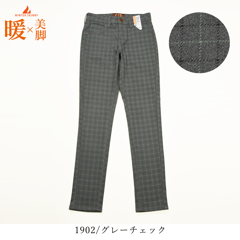 C-17から毎年定番のあったか美脚スキニーが登場しました。ベーシックな5ポケットで、寒い季節に大活躍。吸湿発熱、保温性機能を備えた素材なので、身体の湿気に反応してずっと暖か。穿いた瞬間からやさしく暖かく感じ、抜群のストレッチ性と程よいホールド感と裏微起毛で暖かさと肌ざわりの良さを感じる冬の美脚スキニーです。シルエットは股上がふつうのスキニータイプ。腰周りは、フラットフロント&カーブベルトを使用し、しゃがんでも後ろ姿が美しくフィットします。穿き心地の良さと安定感に定評があるC17こだわりの仕様です。コーデの汎用性が高く、豊富なカラーラインナップも魅力。