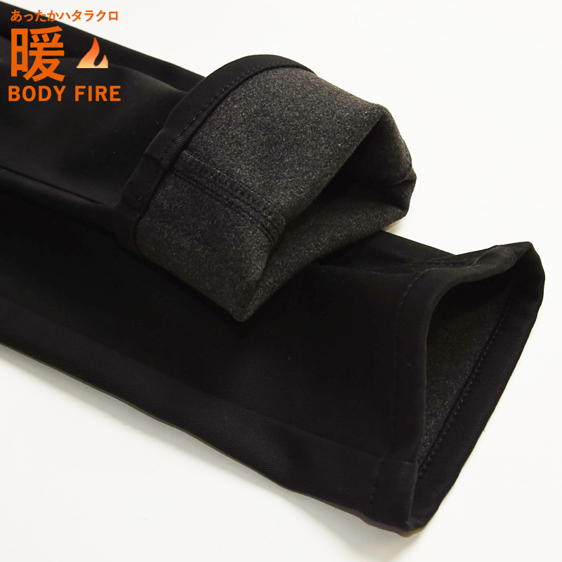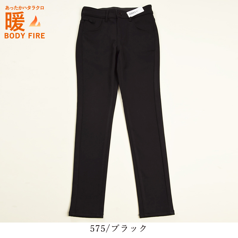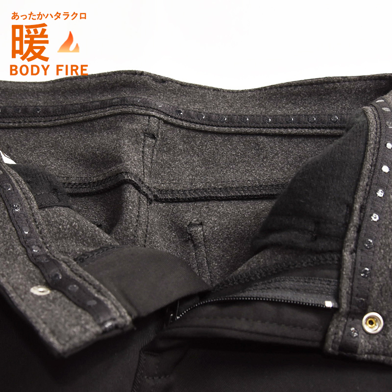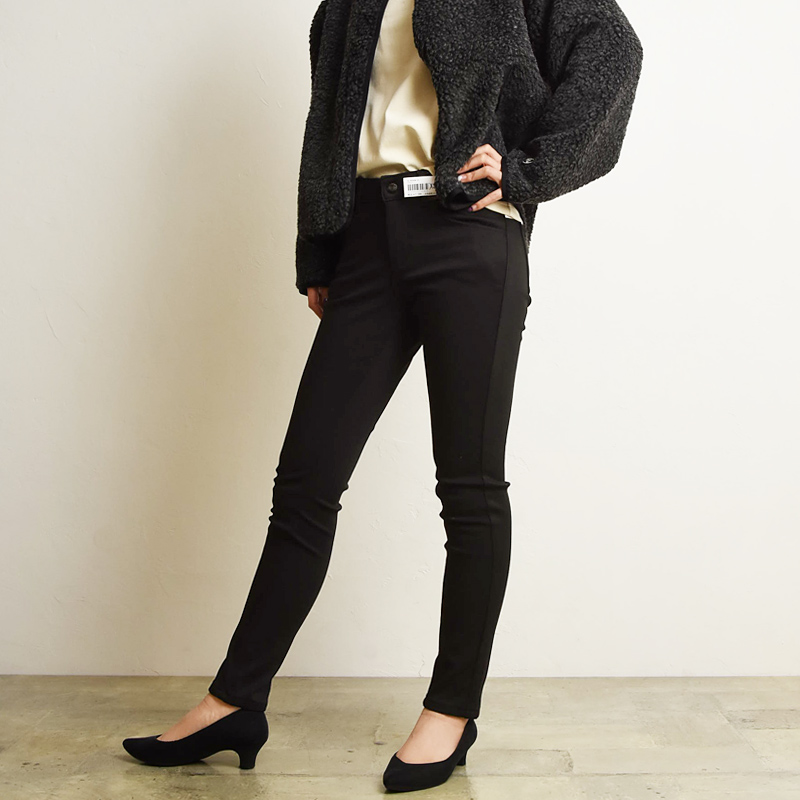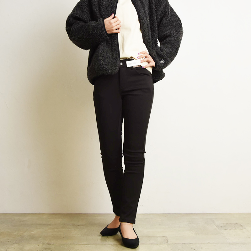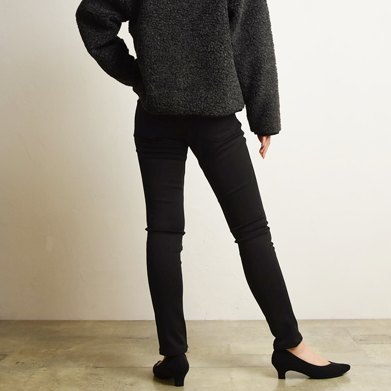 生地は上質なストレッチ素材で楽ちん穿き心地。生地の裏側にストレッチの効いたマイクロフリースを貼り合わせた秋冬仕様。