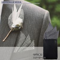 ポケットチーフ 台紙 結婚式 ワンタッチ シルク 日本製 千鳥 柄 リバーシブル 2WAY パフド スリーピークス デザイン 国産 フォーマル チーフ ブランド