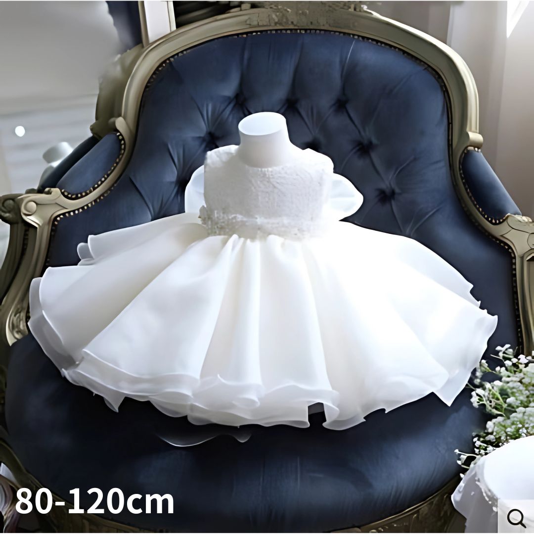 真っ白な高級感たっぷりな素敵な女の子ドレスです。