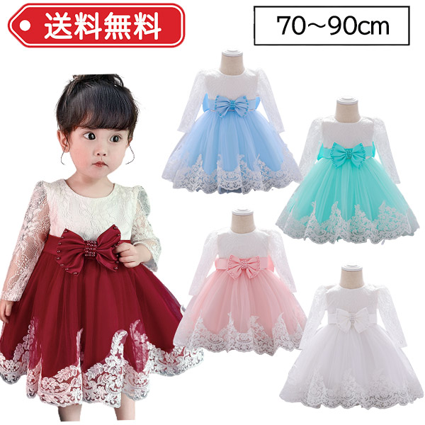 ベビードレス セレモニードレス ベビー キッズ 長袖 リボン プリンセス ワンピース 女の子 チュールドレス 赤ちゃん ベビー服 ハーフバースデー 赤 レッド ホワイト 白 ブルー 青 グリーン 緑 ピンク くすみカラー 結婚式 1歳 誕生日 服 100日 お宮参り 70cm 80cm 90cm ベビードレス 子供ドレス キッズ衣装 フォーマル 送料無料