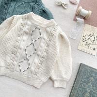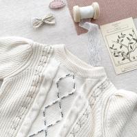 長袖 ニット トップス ランタンスリーブセーター ダイヤモンドレトロセーター 秋 秋冬 冬 女の子 ベビー 赤ちゃん トップス 子供服 キッズ