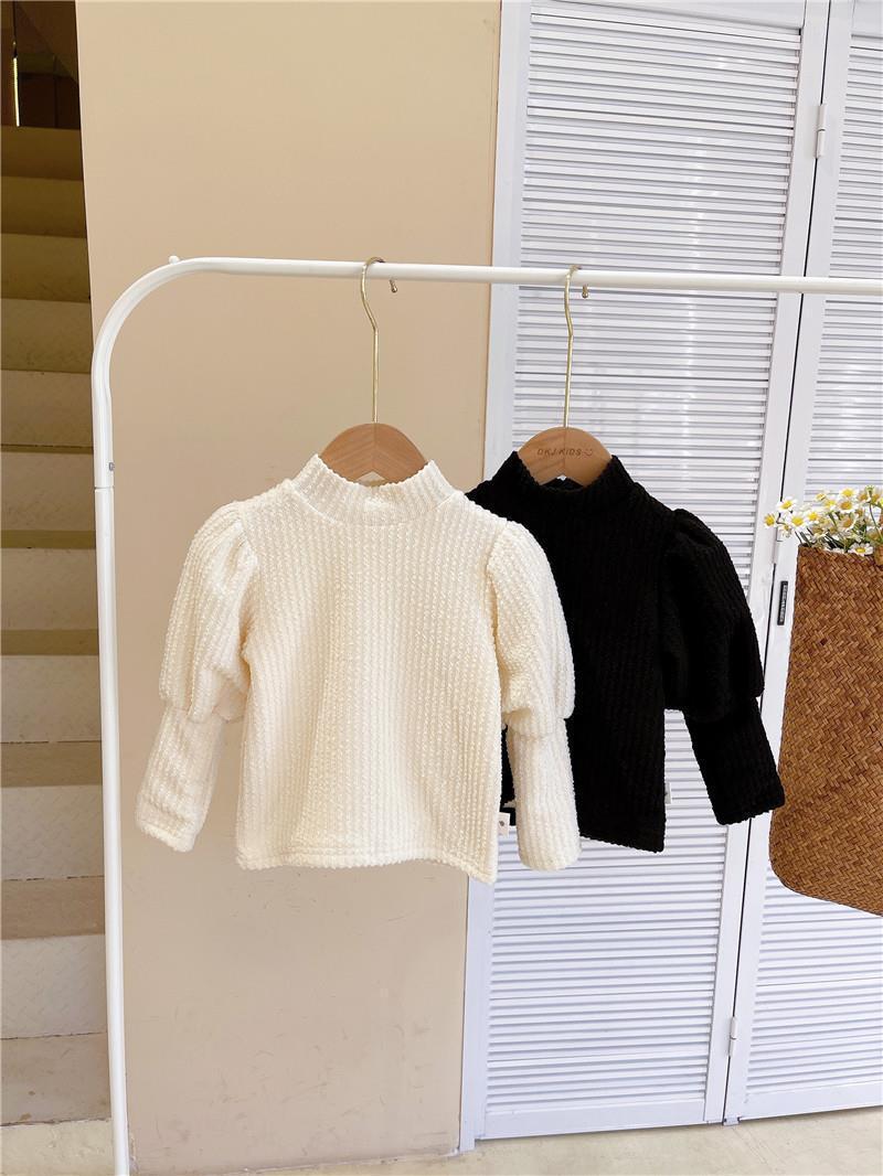 トップス 女の子 長袖 パフスリーブ ベビー 冬 秋 春 子供服 キッズ ジュニア 子ども ボタン無し ボタンなし あったか かわいい おしゃれ ブラック ホワイト シンプル 姉妹お揃い 姉妹リンク 白 黒 小学生 通学 通園 幼稚園 保育園 80 90 100 110 120 130