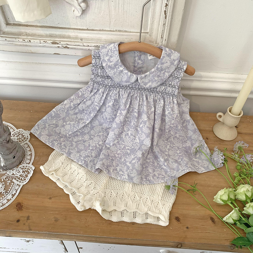 ブラウス ノースリーブ ワンピース ベビー服 襟フリル 丸首 ベビー 赤ちゃん 赤ちゃん服 子供服 子ども服 キッズ ギフト ホワイト 花柄 シンプル ナチュラル 春 秋 冬 上品 70 80 90 100 110