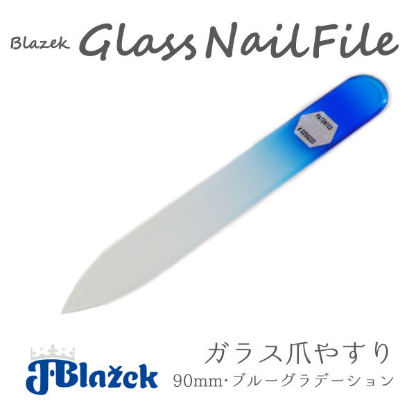 ブラジェク 両面タイプ 90mm Sサイズ ブルー グラデーション #2 ガラス爪やすり blazek ガラス ツメやすり ガラス製 爪 つめ ネイル FM