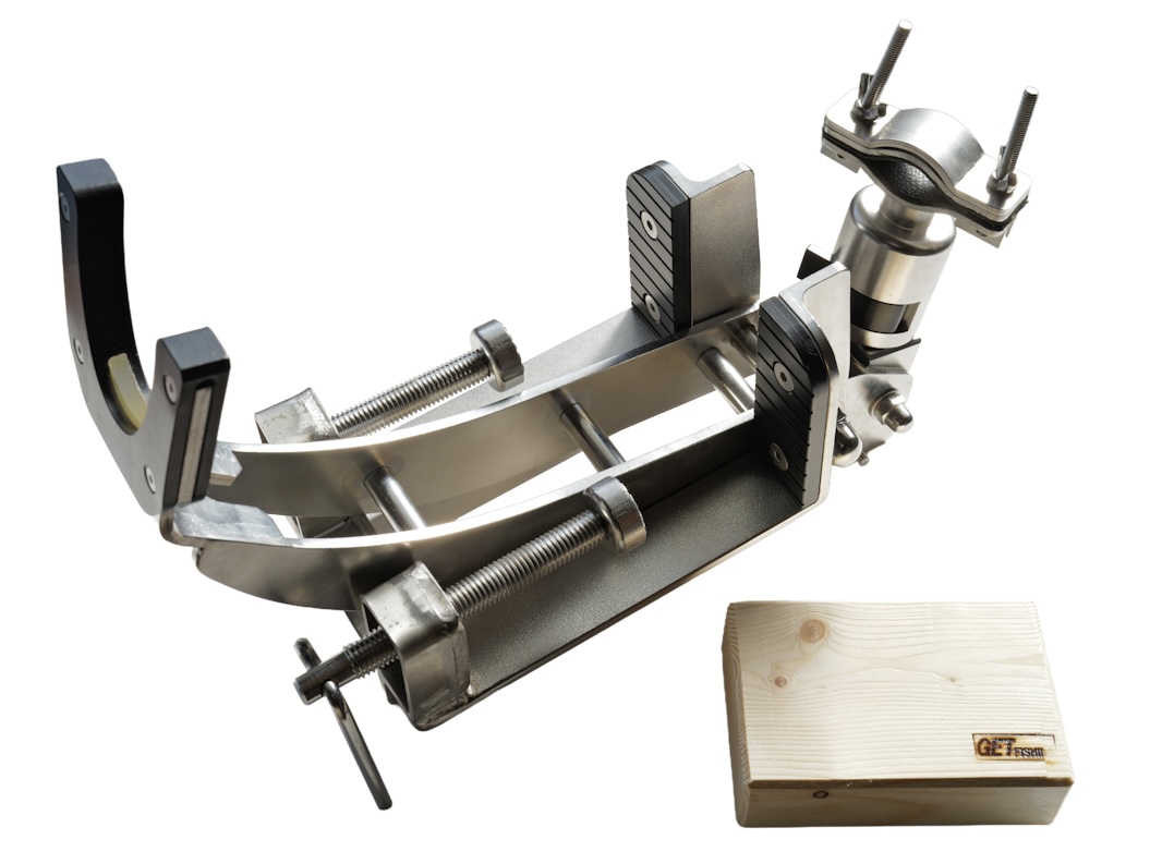 ロッドクランプの長ねじ・蝶ネジは「SUS188」を使用、GETフィッシングオリジナルの椹木付です。