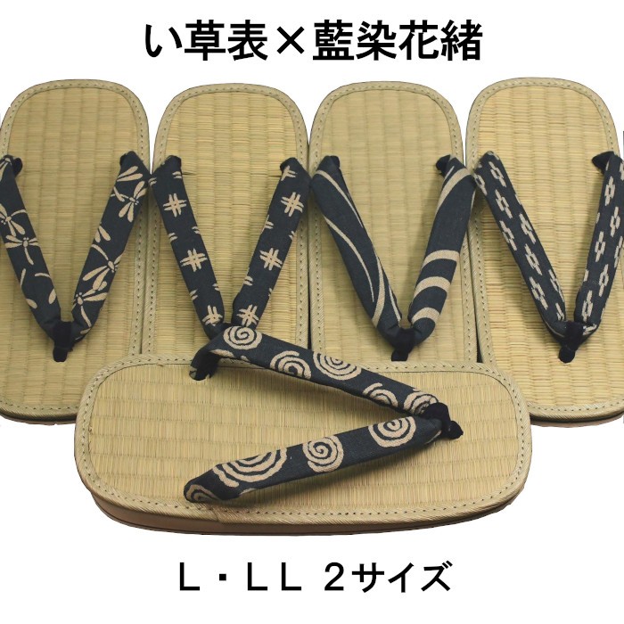 雪駄 い草表 藍染 花緒
