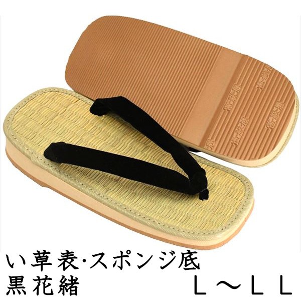 本物の雪駄は表が竹皮の畳表、裏が牛革底ですが、こちらの軽装雪駄は表が井草の畳表、裏がスポンジ底になっています。