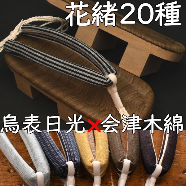 会津木綿から仕立てた丸屋オリジナルの花緒です。