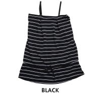 爽やかな細めのボーダーのキャミソール。肩紐は調節可能。 ウエスト部分には、絞れるように紐が一周付いているので、スタイルアップ効果も。 胸やお腹が気になる方には体型カバーとしても使えます。 通気性がよく、洋服感覚でそのまま街にも出られちゃう。ショートパンツとの組み合わせがおすすめです。 カラーバリエーションは、ブラック、ネイビー、ホワイトの3色展開。