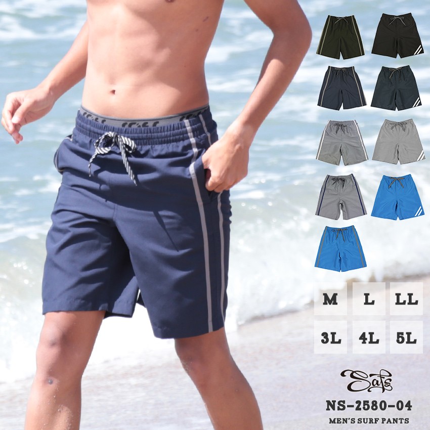 メンズ水着 無地 ライン入り サーフパンツ 総ゴム ns-2580-04
