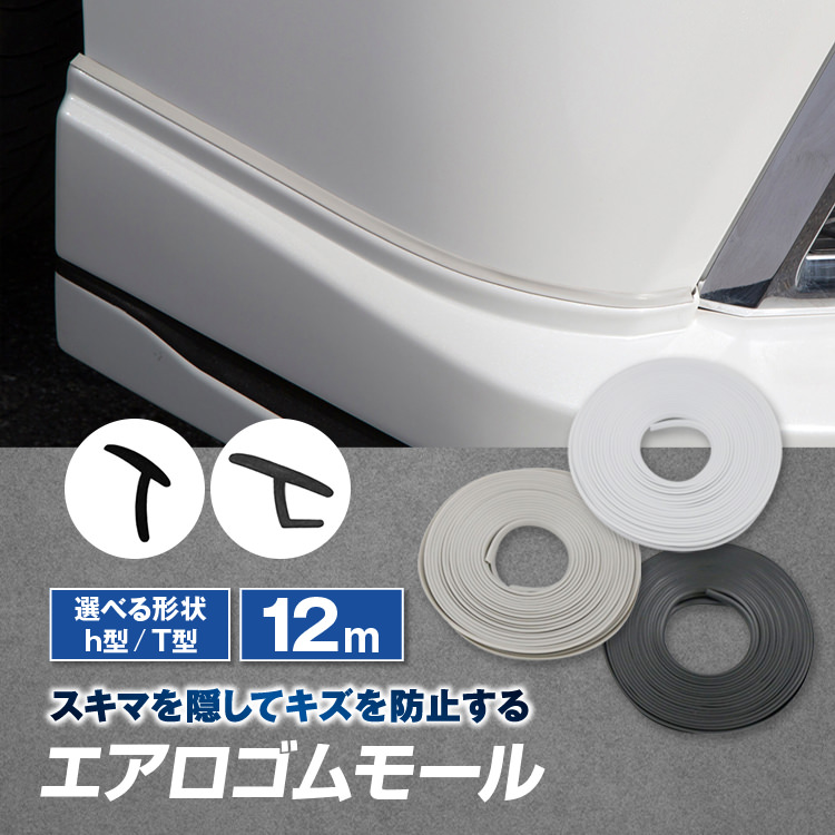 ゴムモール ラバー エアロ 車 h型 T型 12m 12メートル ブラック ホワイト グレー 7ミリ幅 5ミリ幅 自由自在の柔軟性 キズ防止 キズ保護 ドレスアップ カスタム エアロの間に パッキン 両面テープ