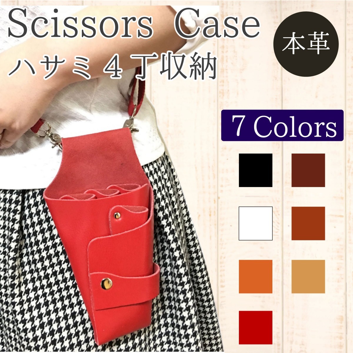 本革シザーケース シンプルタイプ 牛革 送料無料 ハサミ4丁 美容師 トリマー 選べる 7 Colors