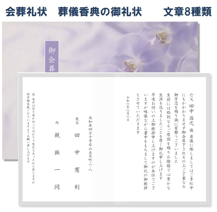 会葬礼状 2枚 カード 葬儀お礼状 告別式 低価格