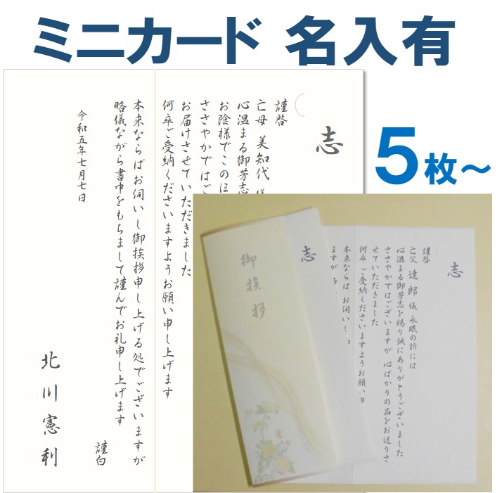 法要挨拶状 印刷 香典返し お礼状 ミニカード 名入れ有 5枚〜9枚 葬儀後 忌明け 満中陰志 49日 50日祭 粗供養 偲び草 印刷 文例 例文