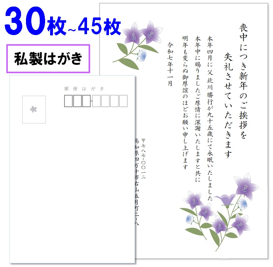 喪中はがき 印刷 30枚〜45枚 名入れ有 私製はがき 送料無料