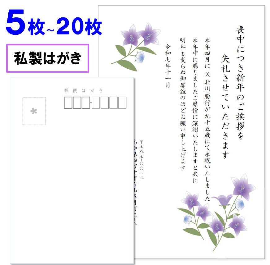 喪中はがき 印刷 5枚〜20枚 名入れ有 私製はがき 送料無料
