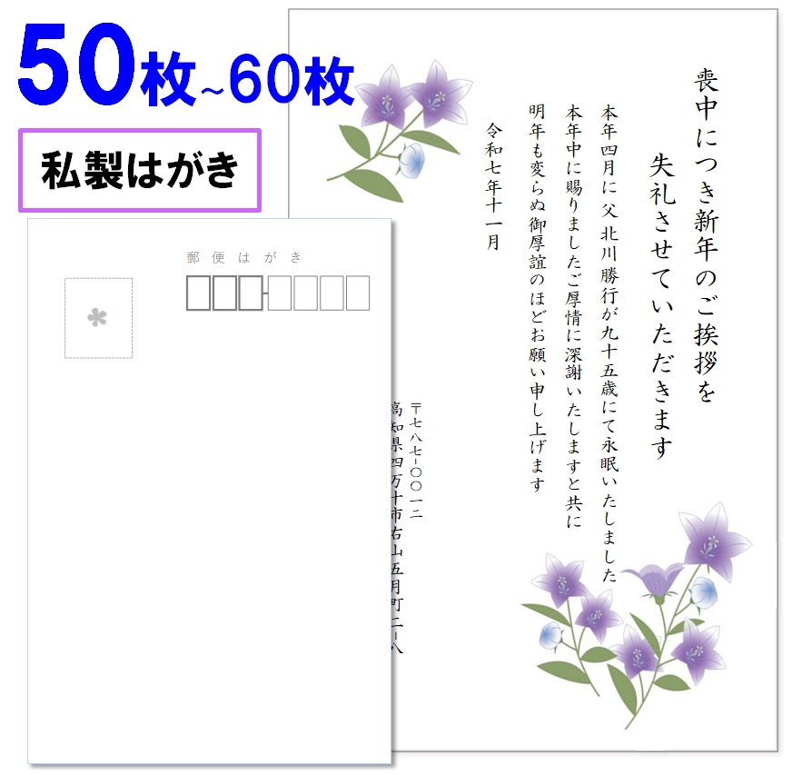 喪中はがき 印刷 50枚〜60枚 名入れ有 私製はがき 送料無料