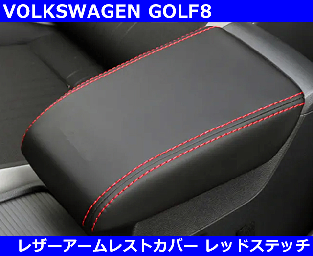 VW ゴルフ8 / GOLF8 レザーアームレストカバー・レッドステッチ