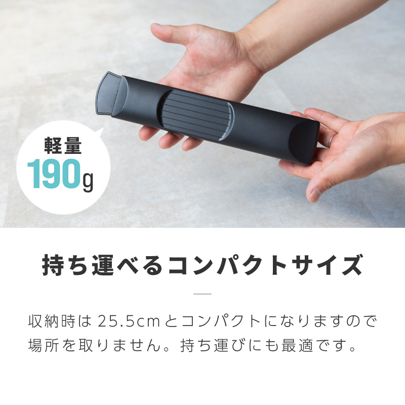 収納時は25.5cmとコンパクトになりますので場所を取りません。