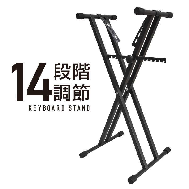 キーボードスタンド X型 折りたたみ 軽量 高さ調節可 ブラック 黒 キーボード台 折り畳み ヤマハ カシオ