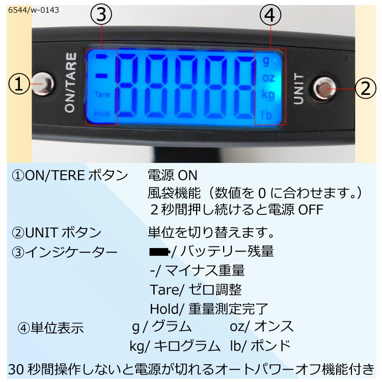 ・測定単位 :g/グラム kg/キログラム oz/オンス lb/ポンド