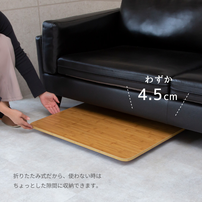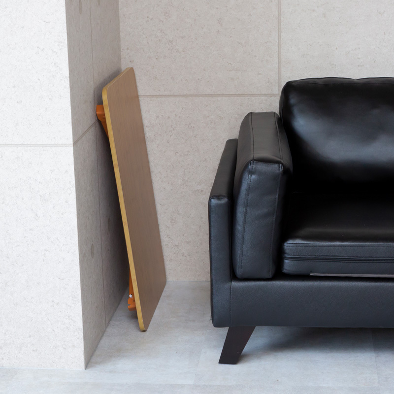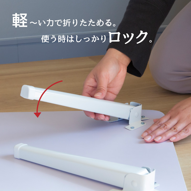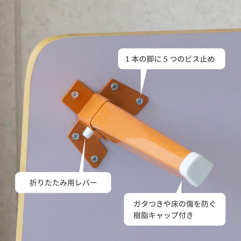 足は爪や指を傷つけにくいレバー式のロックで簡単に折りたたみ出来ます。折りたたむと厚さがわずか4.5cmになりますので家具の隙間や押し入れに簡単に収納できます。