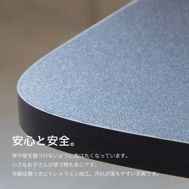 天板は傷に強いメラミン加工がされていますので汚れにくく、パソコンテーブルや作業用、お子様のお絵かきや粘土遊び等に最適です。
