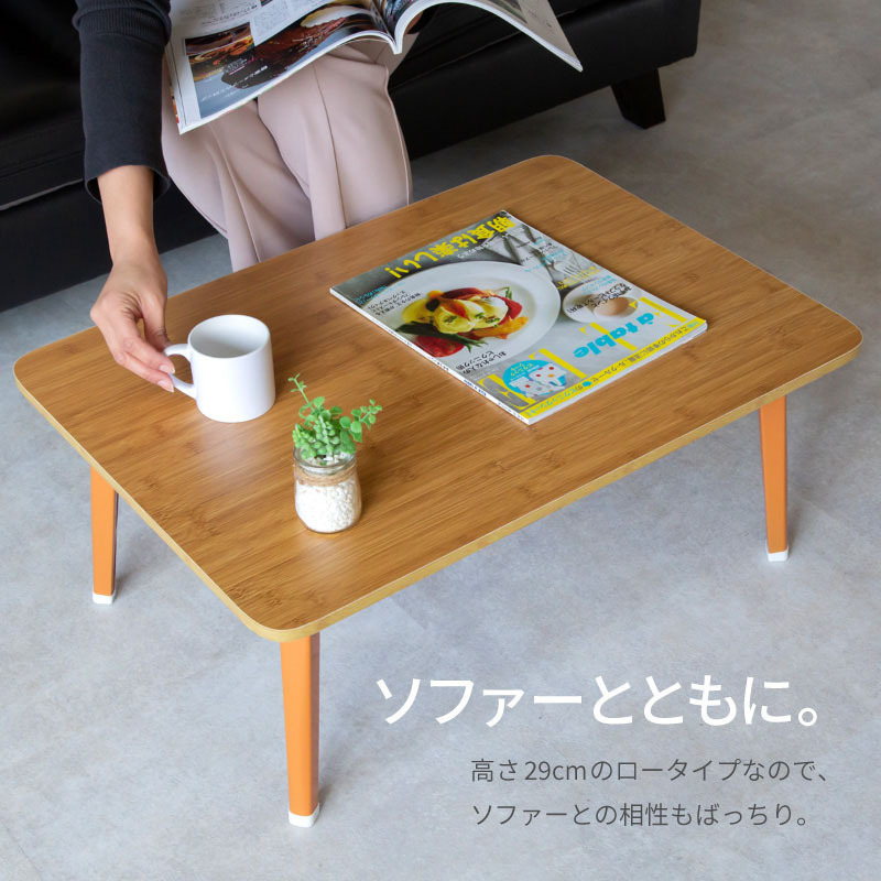 狭いワンルームやプライベートルーム、サブテーブルにもおすすめの折り畳めるコンパクトサイズのミニローテーブルです。