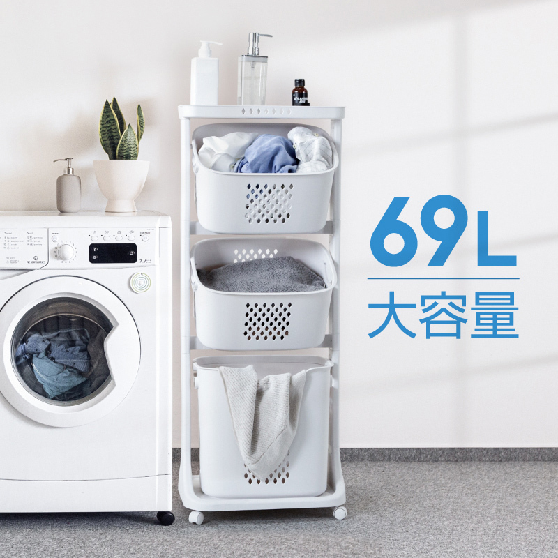 69Lのファミリーサイズ、3段タイプのランドリーバスケットです。