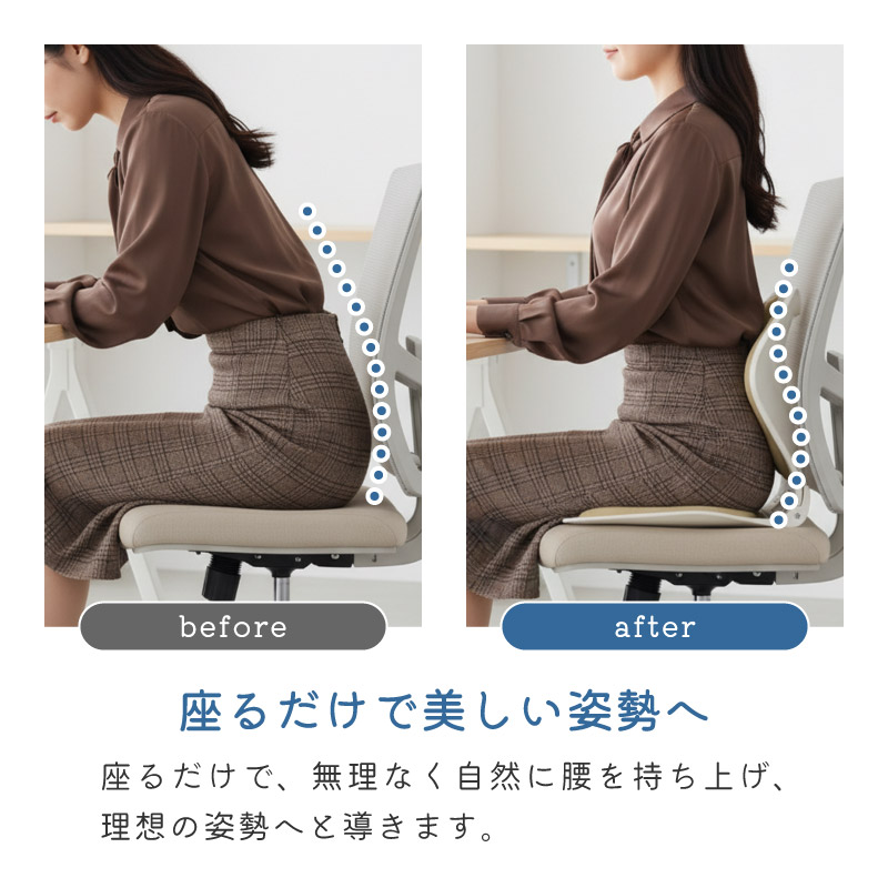 いつもの座りたい場所で使用できるから便利。無理なく正しい姿勢へ導きます。