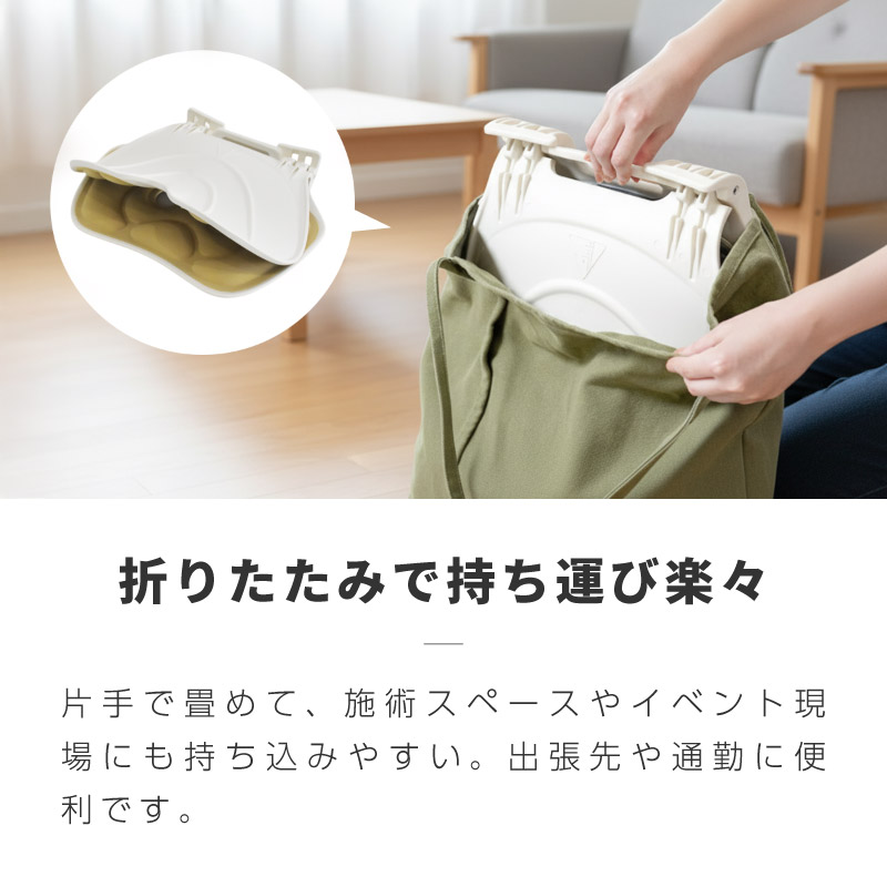 折り畳めば自立するので、オフィスや車内、リビングの隙間にもすっきり収納可能。