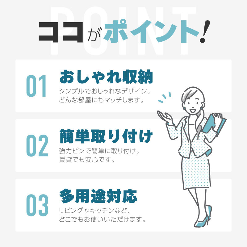 多用途に使えるため、様々なシーンで活躍し、壁面を有効活用して収納スペースを確保。お部屋をすっきりと整理整頓します。