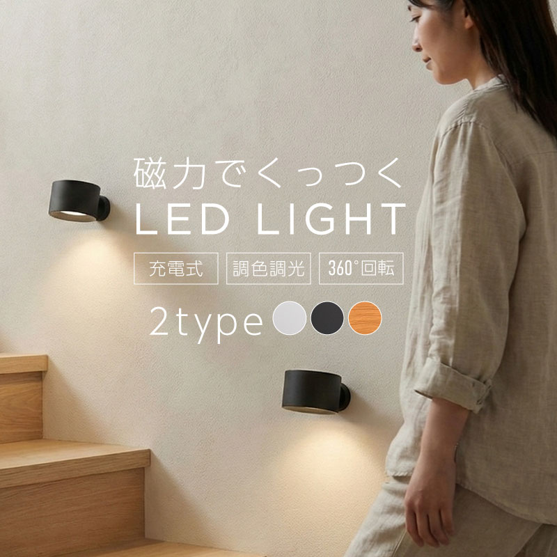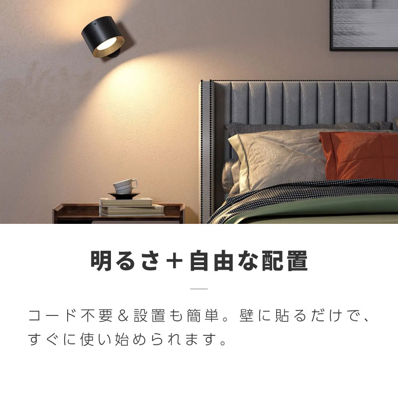 LEDライト 調色 調光 ブラケットライト 照明 スポットライト 充電式 マグネット式 コードレス 取り外し 足元灯 USB-C 急速充電 配線不要 ウォーライト 間接照明 360° 室内 屋内工事不要で使える壁掛けLEDライト。