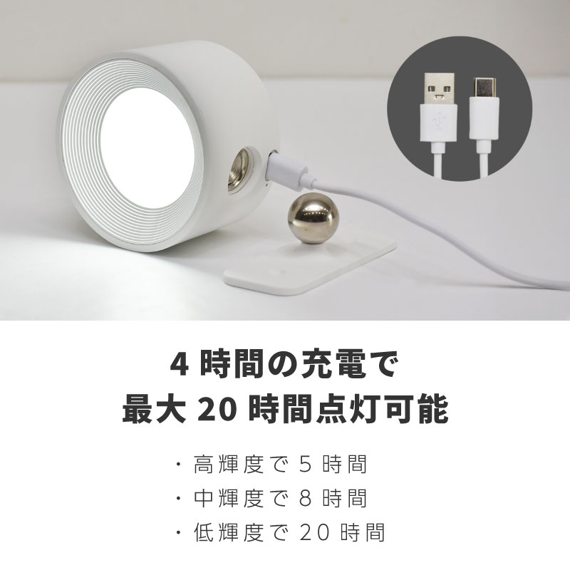 USB-C充電式で最大20時間点灯。